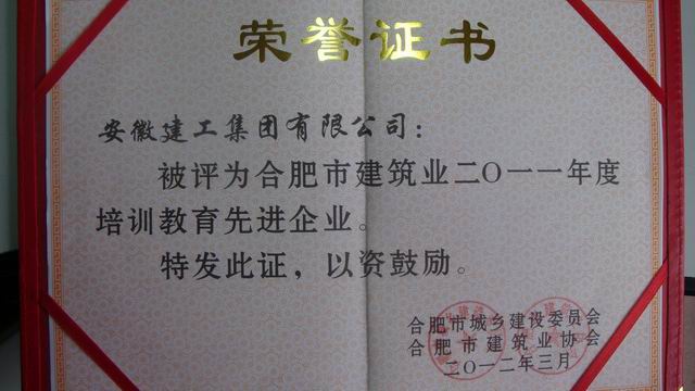 近日,在合肥市建委召開的2012年建筑業(yè)工作會議上,安徽建工集團(tuán)榮獲“合肥市建筑業(yè)二0一一年度培訓(xùn)教育先進(jìn)企業(yè)”榮譽(yù)稱號。