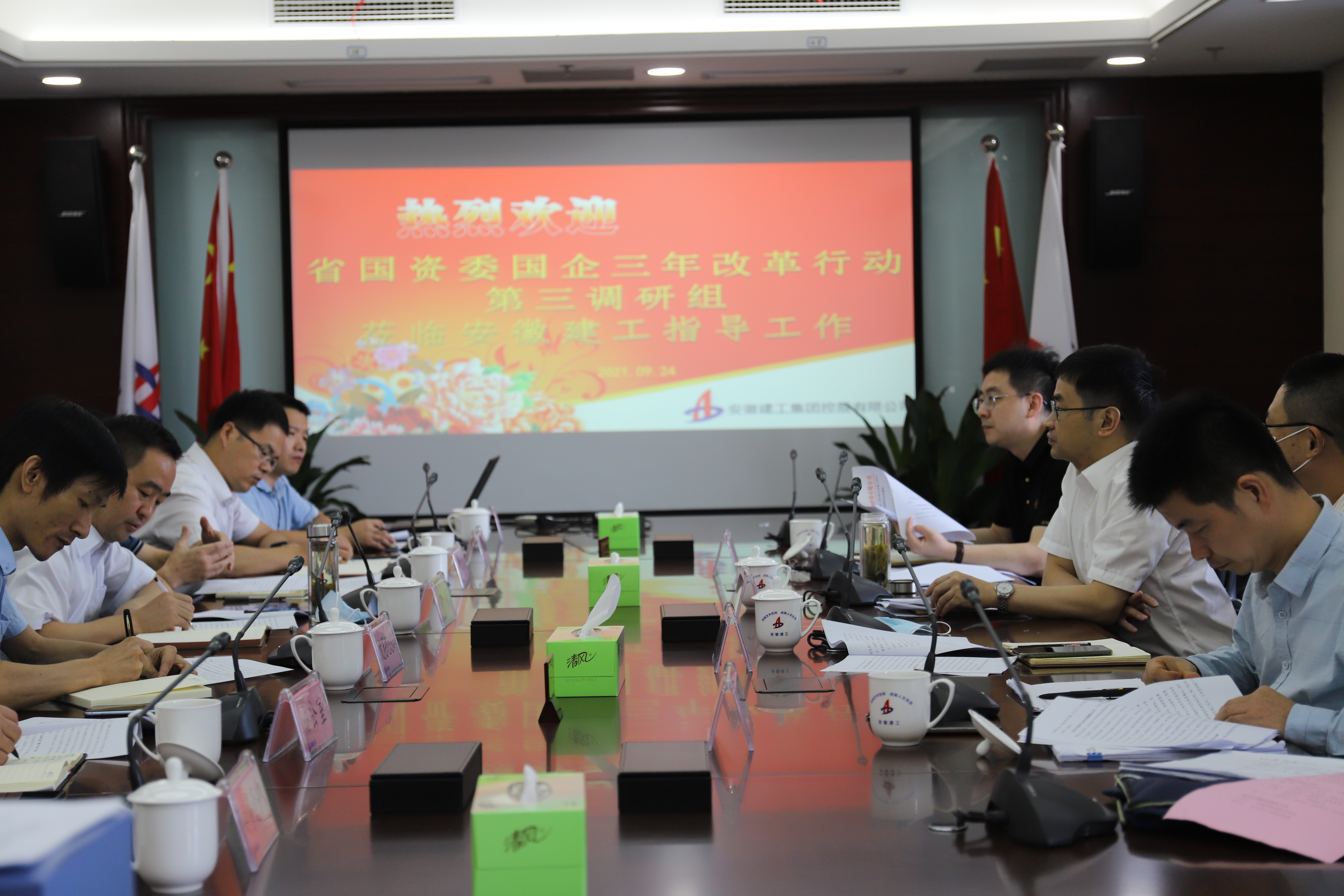9月24日上午,省國(guó)企改革領(lǐng)導(dǎo)小組辦公室第三調(diào)研組組長(zhǎng)、省國(guó)資委產(chǎn)權(quán)管理處處長(zhǎng)陳兵率隊(duì)到安徽建工調(diào)研國(guó)企改革三年行動(dòng)重點(diǎn)任務(wù)落實(shí)情況。建工股份黨委委員、副總經(jīng)理、董事會(huì)秘書黃代接待調(diào)研組一行并參加調(diào)研會(huì)議。