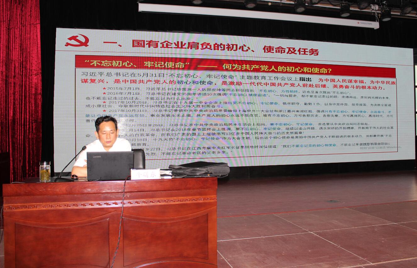 牛曙東圍繞主題,分別從國有企業(yè)肩負(fù)的初心、使命及任務(wù),當(dāng)前兩級機(jī)關(guān)黨建工作存在的問題,國企加強(qiáng)與改進(jìn)黨的領(lǐng)導(dǎo)和黨的建設(shè)的著力點(diǎn)三個(gè)方面,為與會人員上了一堂具有生動性、針對性和指導(dǎo)性的黨課。