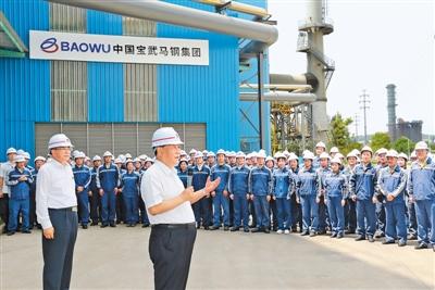 馬鞍山市因鋼而設(shè)、因鋼而興。習近平來到中國寶武馬鋼集團,了解企業(yè)生產(chǎn)經(jīng)營情況,察看重點產(chǎn)品展示。隨后,習近平走進優(yōu)質(zhì)合金棒材車間,察看加熱爐、初軋機、中軋機等運行情況。車間外,企業(yè)勞動模范、工人代表看到總書記來了,熱烈鼓掌。習近平親切地同大家打招呼。他指出,疫情發(fā)生以來,馬鋼克服困難,率先復工復產(chǎn),上半年產(chǎn)量和營收同比實現(xiàn)“雙升”。要抓住深化國有企業(yè)改革和推動長三角一體化發(fā)展的重大機遇,加強新材料新技術(shù)研發(fā),開發(fā)生產(chǎn)更多技術(shù)含量高、附加值高的新產(chǎn)品,增強市場競爭力。勞動模范是共和國的功臣,要大力弘揚勞模精神。