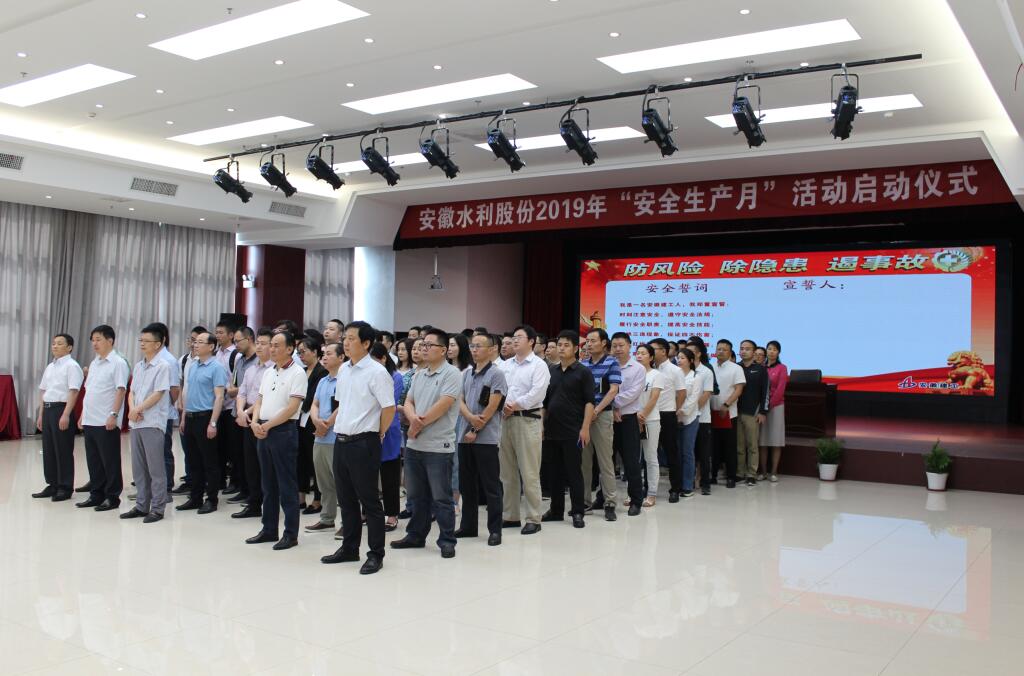5月31日上午,安徽水利開發(fā)股份有限公司舉行了以“防風險、除隱患、遏事故”為主題的2019年“安全生產月”活動啟動儀式。股份公司安委會主任、總經理許克順出席儀式并講話,股份公司安委會副主任、副總經理孫學軍主持儀式并領誓,股份公司總工程師楊斌、股份機關全體員工、安建建設、安建海外及安建財務相關人員參加了啟動儀式。