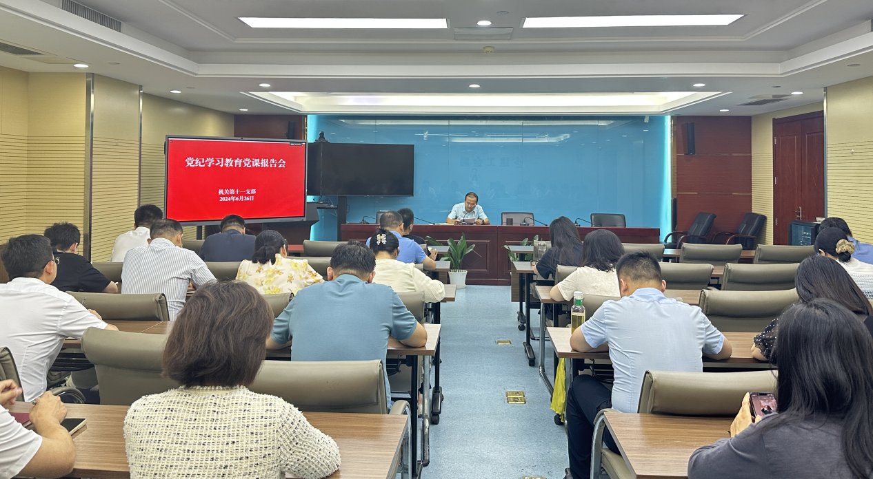 為扎實(shí)推動(dòng)黨紀(jì)學(xué)習(xí)教育走深走實(shí),6月26日機(jī)關(guān)第十一黨支部(建工金融)組織開(kāi)展了紀(jì)律黨課報(bào)告會(huì),黨支部書(shū)記王繼成進(jìn)行授課,全體黨員參加學(xué)習(xí)。