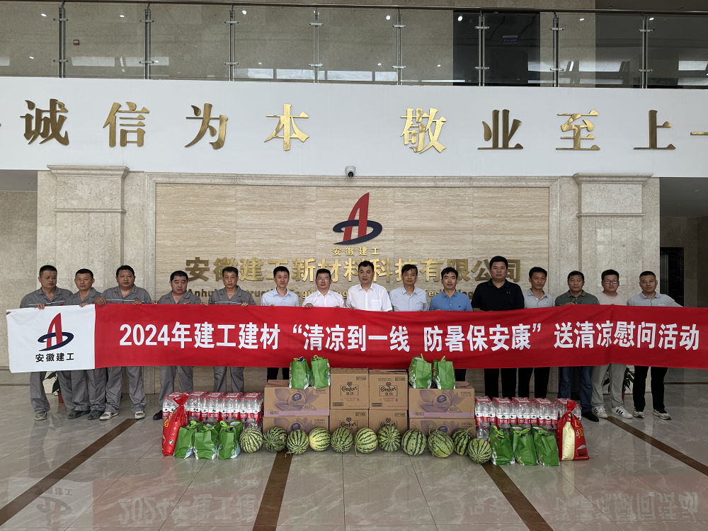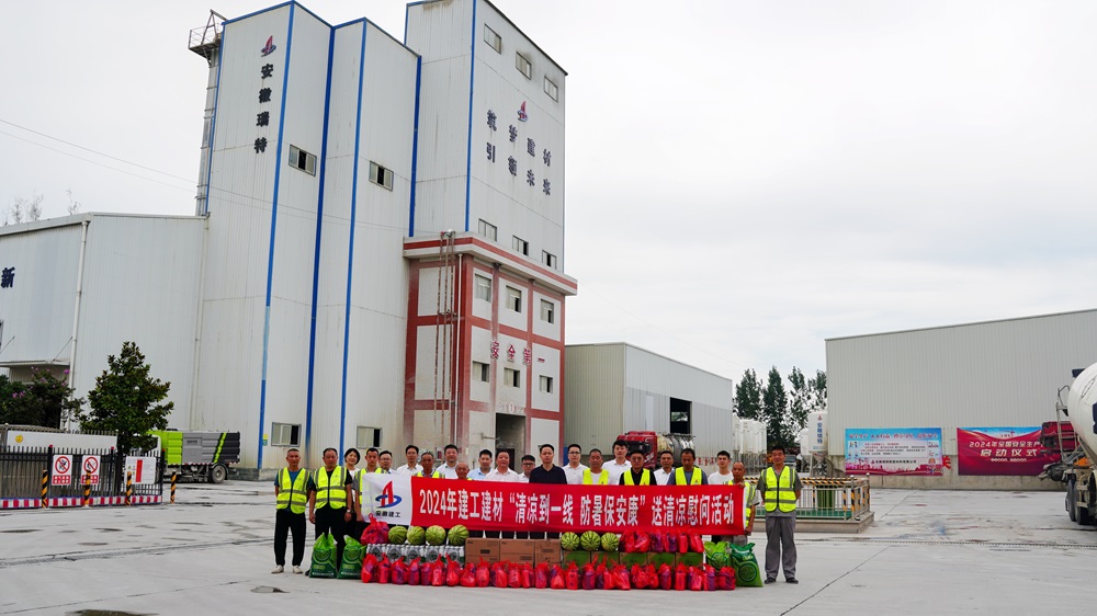 7月16日,建工建材黨委委員、副總經(jīng)理、工會主席邵佳一行赴蚌埠建材、嘉和建筑開展“清涼到一線 防暑保安康”送清涼慰問活動,為生產(chǎn)一線的職工們送去了夏季藥物、西瓜、清涼飲品等防暑降溫物品,并向堅守崗位的一線職工表示誠摯的問候和感謝。