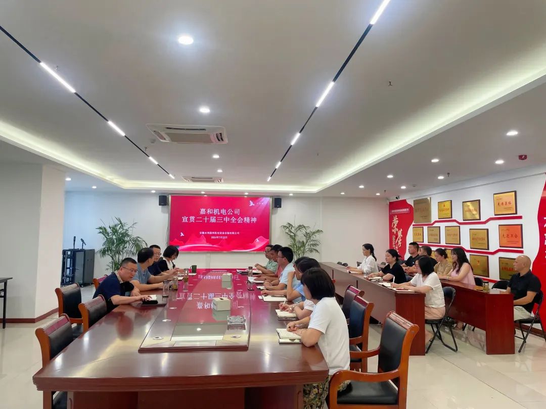 嘉和機電黨支部召開集體學習會,傳達學習貫徹黨的二十屆三中全會精神,要求結合嘉和機電生產經營實際,把宣貫落實會議精神轉化為推動企業(yè)改革發(fā)展的動力,立足全年目標任務,向著做專做精做強企業(yè)發(fā)展目標邁進。