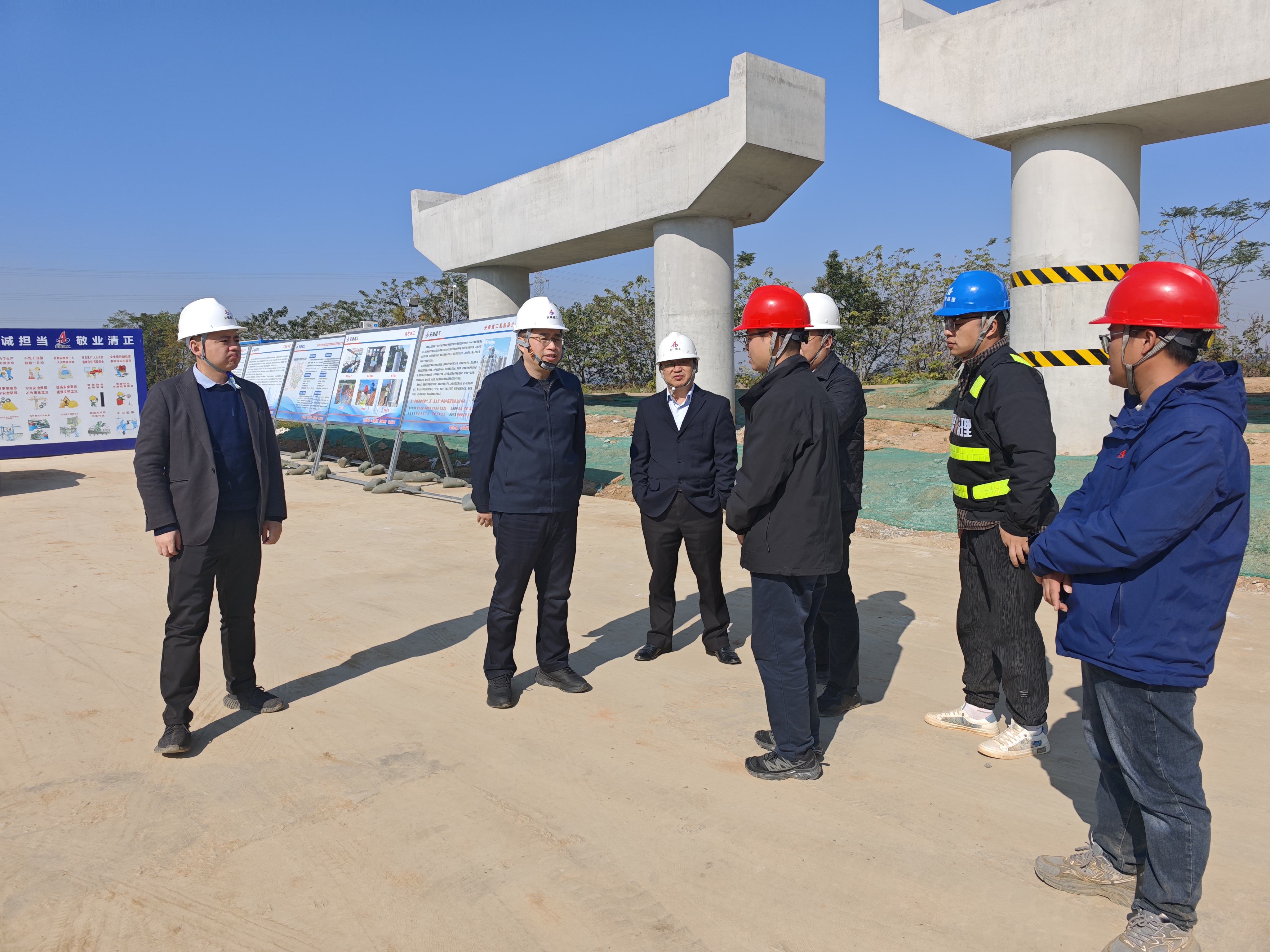 錢申春一行實(shí)地察看G4231南九高速月海段、安望段先行工程施工現(xiàn)場(chǎng),聽取項(xiàng)目負(fù)責(zé)人的工作匯報(bào),對(duì)項(xiàng)目前期取得的階段性成果予以肯定,并就下一步工作提出具體要求。他強(qiáng)調(diào),一是錨定項(xiàng)目建設(shè)目標(biāo),強(qiáng)化統(tǒng)籌協(xié)調(diào)力度,聚焦關(guān)鍵工序、重要節(jié)點(diǎn),加快推進(jìn)全線建設(shè)籌備及先行工程實(shí)施,確保各項(xiàng)工作有序銜接、高效推進(jìn),著力打造品質(zhì)標(biāo)桿工程;二是嚴(yán)守質(zhì)量安全紅線底線,針對(duì)危大工程等重點(diǎn)領(lǐng)域,深入落實(shí)集團(tuán)各項(xiàng)管理制度,常態(tài)化開展質(zhì)量安全隱患排查整治,建立閉環(huán)管理機(jī)制,堅(jiān)決防范各類風(fēng)險(xiǎn)隱患,保障項(xiàng)目安全穩(wěn)定推進(jìn);三是加強(qiáng)各單位協(xié)同聯(lián)動(dòng),凝聚工作合力,持續(xù)提升項(xiàng)目建設(shè)質(zhì)效,推動(dòng)項(xiàng)目高標(biāo)準(zhǔn)、高質(zhì)量完成。