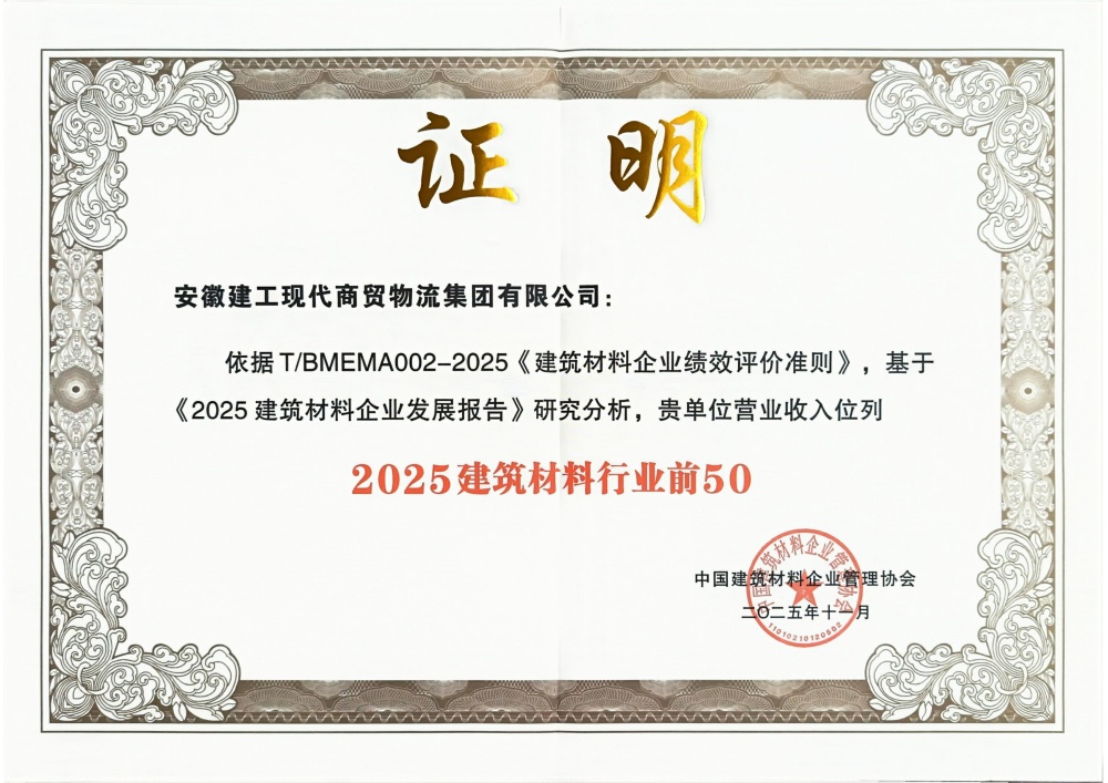 獲此榮譽(yù),既是對公司過去一年經(jīng)營成果的權(quán)威認(rèn)可,更是對公司在建材供應(yīng)鏈領(lǐng)域的綜合實力與服務(wù)標(biāo)桿地位的彰顯。展望未來,公司將圍繞“商貿(mào)+物流”兩大優(yōu)勢業(yè)務(wù),持續(xù)提升供應(yīng)鏈效率與服務(wù)質(zhì)量,為建材行業(yè)高質(zhì)量發(fā)展注入新動能。