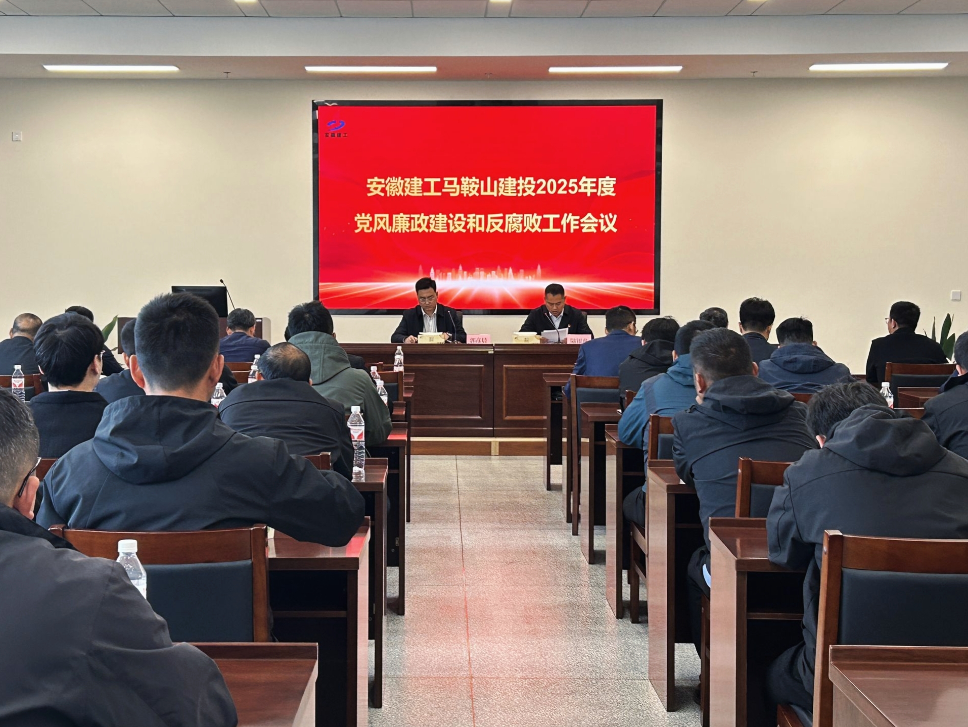 4月3日下午,安徽建工馬鞍山建投召開2025年度黨風廉政建設和反腐敗工作會議。馬鞍山建投黨委書記、董事長、總經理郭彥晨出席會議并講話,黨委委員、副總經理陸銀虎主持會議,馬鞍山建投全體職工參加會議。